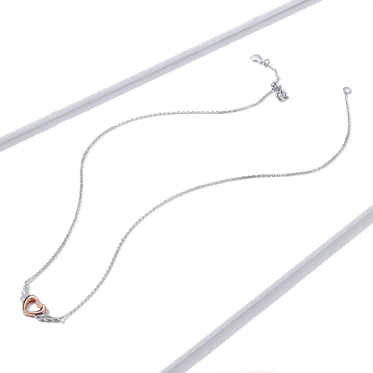 Dvobarvna ogrlica z obeskom v obliki srca v slogu Pandora BSN162