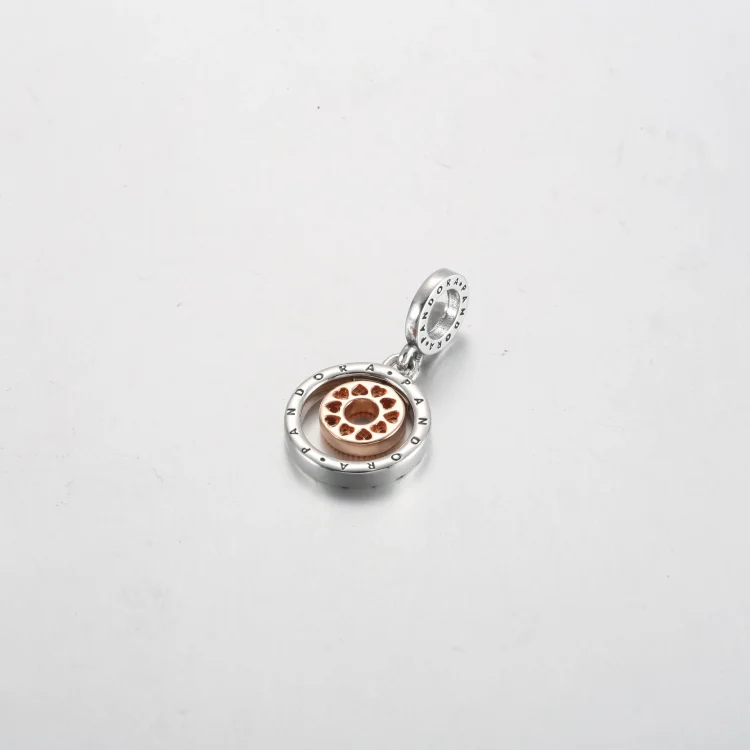 Naš ikonični obesek, prenovljen kot obesek. Ta dvobarvni viseči obesek s krogi z logotipom Pandora je opremljen s krogom, prevlečenim s 14-karatnim rožnatim zlatom, z bleščečim pavéjem, ki se vrti znotraj poliranega srebrnega kroga, okrašenega z logotipom Pandora. Ta dinamičen kos združuje zelo priljubljene motive, zaradi česar je popoln dodatek k vaši zapestnici.
