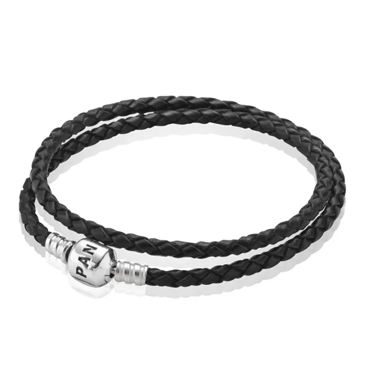 To črno dvoslojno zapestnico iz tkanega usnja s sodčasto zaponko iz srebra čistine čistine morate imeti v svoji zbirki. Dodajte nekaj obeskov, da bo vaš!