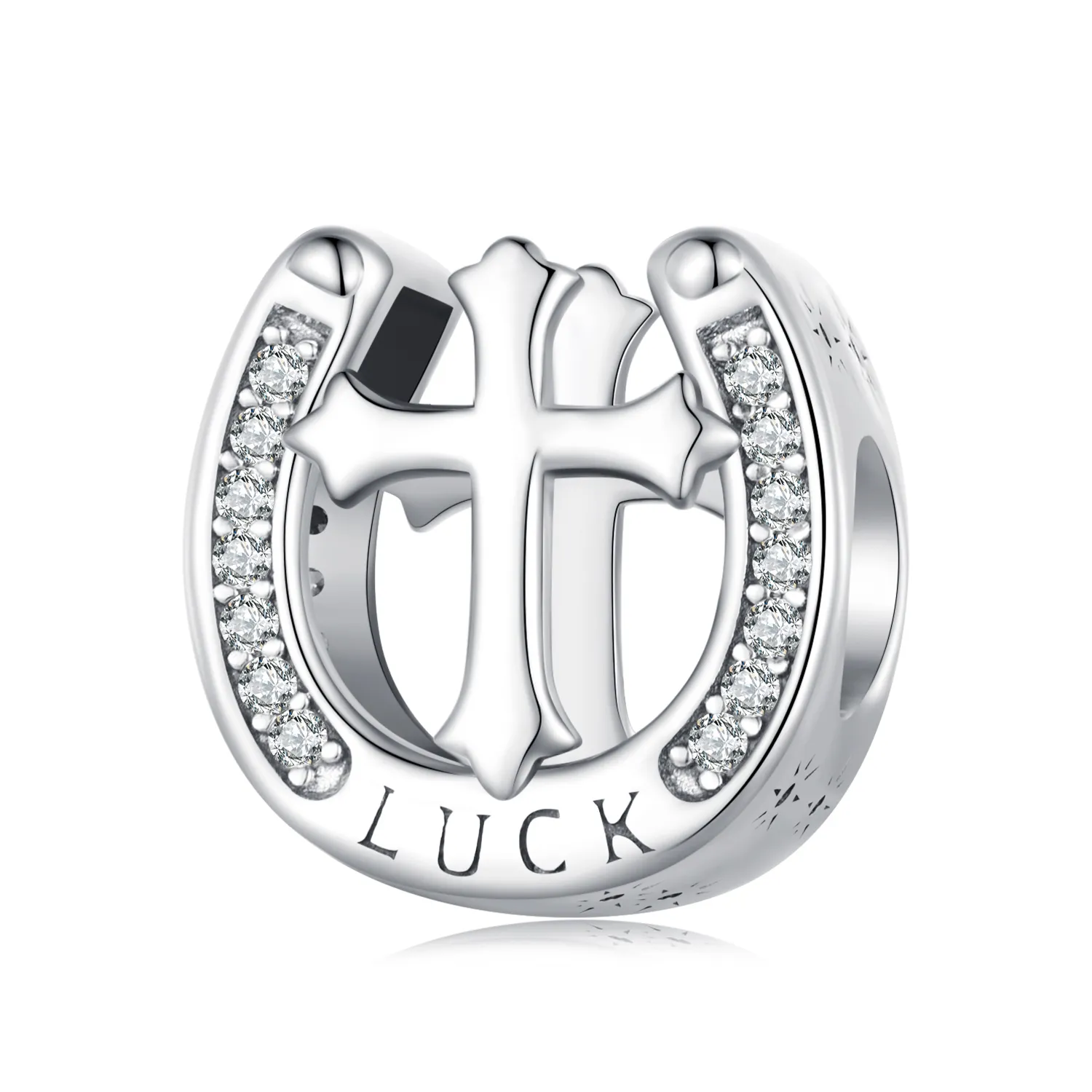 Izjemen Pandora Style Guard Charm - SCC2541, simbol zaščite in sreče. Ta obesek vsebuje edinstveno kombinacijo podkve in križnih elementov, ki so lepo oblikovani, da vaši zapestnici Pandora dodajo pridih elegance. Ta obesek, izdelan s skrbno pozornostjo do podrobnosti, je izdelan iz visokokakovostnih materialov, ki zagotavljajo vzdržljivost in dolgo življenjsko dobo. Podkev predstavlja srečo in zaščito, medtem ko križ simbolizira vero in božansko vodstvo. Skupaj ustvarijo močan talisman, ki vam daje občutek varnosti in sreče. Personalizirajte svoj šarm z vgraviranim sporočilom "1uck", igrivim zasukom besede "sreča", ki vas spominja na pozitivno energijo, ki jo prinaša. Ta premišljena prilagoditev vašemu šarmu doda osebno noto, zaradi česar je resnično enkraten. Ta obesek, ki je združljiv z zapestnicami Pandora, se neopazno zlije z vašo obstoječo zbirko ali izstopa sam. Z lahkoto doda pridih prefinjenosti in pomena vsaki obleki ali priložnosti. Pandora Style Guard Charm - SCC2541 ni samo osupljiv dodatek, ampak tudi pomemben simbol zaščite in sreče. Sprejmite pozitivno energijo in dvignite svoj stil s tem očarljivim šarmom.