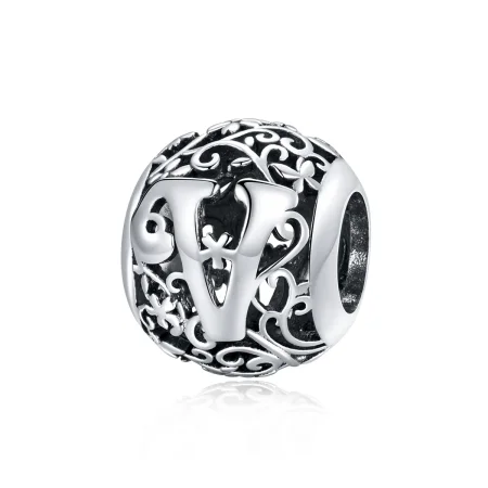 Obesek z odprto rožo v slogu Pandora, črka V - SCC1444-V