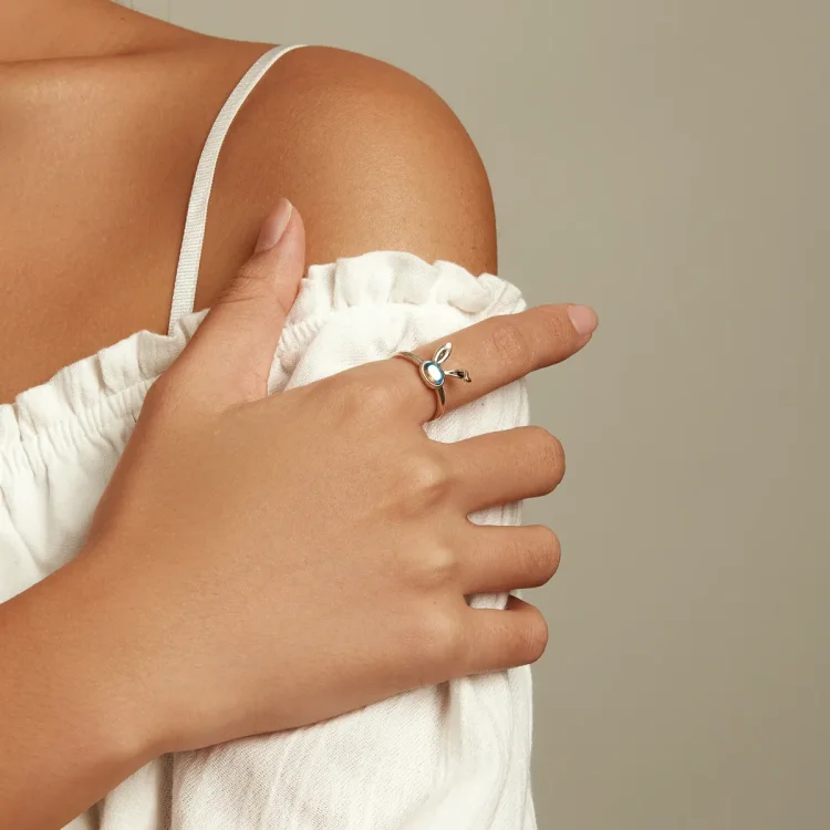 Odprt prstan z zajčkom z mesečevim kamnom v slogu Pandora - SCR784, čudaški in očarljivi kos, ki bo v vašo zbirko nakita vnesel pridih čarobnosti. Ta izvrsten prstan ima očarljiv mesečev kamen, znan po svojem eteričnem sijaju in očarljivi lepoti. Ta odprti prstan, izdelan z največjo natančnostjo in skrbnostjo, na enem koncu prikazuje čudovit dizajn zajčka, ki celotni estetiki doda igriv in očarljiv element. Zapleteni detajli zajčka z nežnimi ušesi in izrazitimi očmi bodo zagotovo osvojili srca in sprožili pogovore, kamorkoli greste. Prilagodljiva oblika tega prstana zagotavlja udobno prileganje prstom katere koli velikosti, zaradi česar je vsestranski in priročen za nošenje. Ne glede na to, ali ga želite razstaviti kot izrazit kos ali ga združiti z drugimi prstani, da ustvarite edinstven videz, ta prstan v slogu Pandora zlahka dopolni vsako obleko in priložnost. Ne samo, da se ta prstan ponaša z osupljivim dizajnom, ampak ponuja tudi prednosti mesečevega kamna. Mesečev kamen, znan kot kamen novih začetkov in intuicije, naj bi izboljšal čustveno dobro počutje in spodbujal notranjo rast. Njegova pomirjujoča energija naj bi zagotavljala mir in ravnovesje, zaradi česar je idealna izbira za tiste, ki iščejo harmonično in mirno avro. Razvajajte se ali presenetite ljubljeno osebo s tem odprtim prstanom z zajčkom iz mesečevega kamna v slogu Pandora - SCR784. Zaradi kombinacije elegance, vsestranskosti in očarljivega mesečevega kamna je resnično poseben kos, ki ga bomo cenili še leta. Sprejmite privlačnost lune in naj bo ta prstan vsakodnevni opomin na lepoto in čarobnost, ki nas obdajata.
