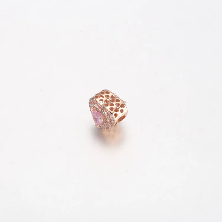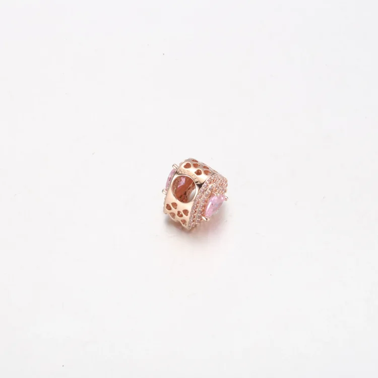 Širite ljubezen z bleščečim obeskom v obliki srca. Obesek iz naše edinstvene mešanice s 14-k rožnato pozlato ima v sredini izbočeno srce, ročno dokončanim kristalom rožnate barve ter dvema obrobama s kristalčki kubičnega cirkona. Ob straneh so izrezljani majhni srčasti vzorčki. Na bleščeč način se poklonite ljubezni in dodajte romantiko svojemu stilu s tem obeskom. Ta kos nakita podarite osebi, ki vam je zares blizu.