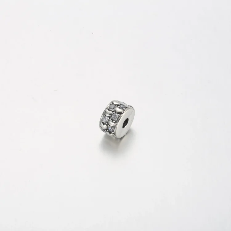 Zaščitite svoje obeske in jih imejte na varnem s tem simbolom ljubezni. Sponka Neskončna srca, izdelana iz srebra, odlikujeta dva niza izbočenih src z bleščečimi se kamenčki za raznovrstnejši videz. Nosite jo na svoji zapestnici, da bi najljubši obeski kar najbolj izstopali. Pomembno je, da ima silikonski obroček in da se ne pritrdi na utorna navoja zapestnice.
