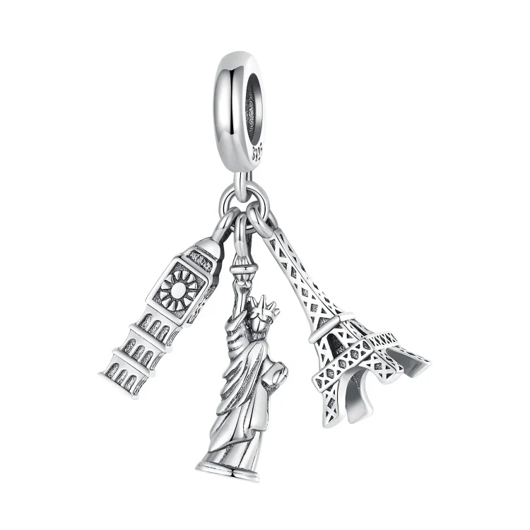 Pandora Style Global Travel Dangle - SCC2483, osupljiv obesek, ki povzema lepoto znanih popotniških destinacij. S svojim edinstvenim konceptom oblikovanja ta obesek prikazuje čudeže svetovnega turizma. Vsaka kroglica predstavlja ikonično znamenitost, ki vas potopi v veličino teh izjemnih krajev. Predstavljajte si, da slišite zvoneče zvonjenje Big Bena, ki simbolizira brezčasno privlačnost Londona. Predstavljajte si, da ste priča dih jemajočemu prizoru Eifflovega stolpa, ki visoko stoji na ozadju zahajajočega sonca. In naj vas podoba Kipa svobode spomni na brezmejno svobodo, ki prebiva v vašem srcu. Ta viseči obesek, izdelan s skrbno pozornostjo do podrobnosti, je pravo umetniško delo. Izdelan je iz visokokakovostnih materialov, ki zagotavljajo vzdržljivost in dolgo življenjsko dobo, medtem ko izvrstna izdelava doda pridih elegance vsaki zapestnici ali ogrlici v stilu Pandora. Poleg svoje estetske privlačnosti služi ta obesek kot čudovit opomnik na vaše svetovne dogodivščine in želje. Spodbuja pogovore in vam omogoča, da svoje potovalne zgodbe delite z ljubljenimi. Prav tako je premišljeno darilo za navdušence nad potepanjem in ljubitelje potovanj. Sprejmite duh potepanja in sprostite svojega notranjega pustolovca s Pandora Style Global Travel Dangle - SCC2483. Naj vas popelje na najbolj očarljive destinacije na svetu in vas navdihne k raziskovanju, sanjarjenju in odkrivanju.