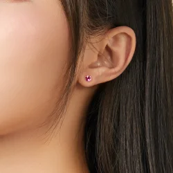 Srebrni uhani z žebljički iz rojstnega kamna v stilu Pandora - SCE862-6