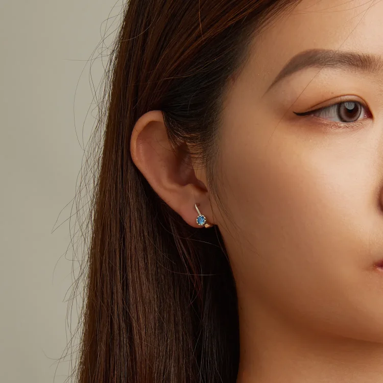 Preprosti modri obročasti uhani iz cirkonija v slogu Pandora - BSE686