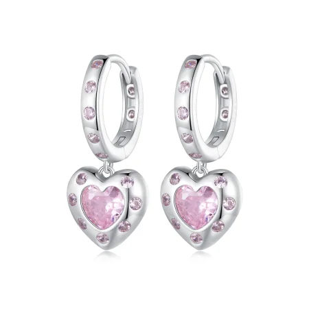 Rožnati obročasti uhani v obliki srca v slogu Pandora - SCE1625