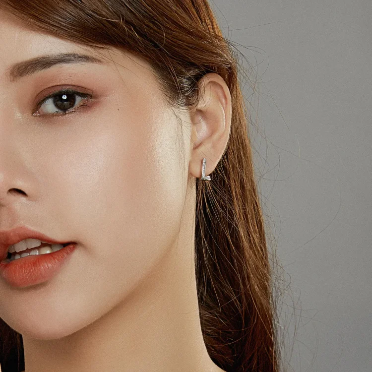 Srebrni geometrijski obročasti uhani v slogu Pandora SCE975