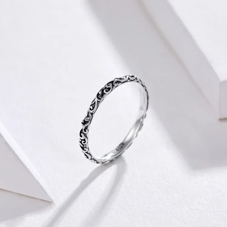 Srebrni prstan z retro vzorci v stilu Pandora SCR513