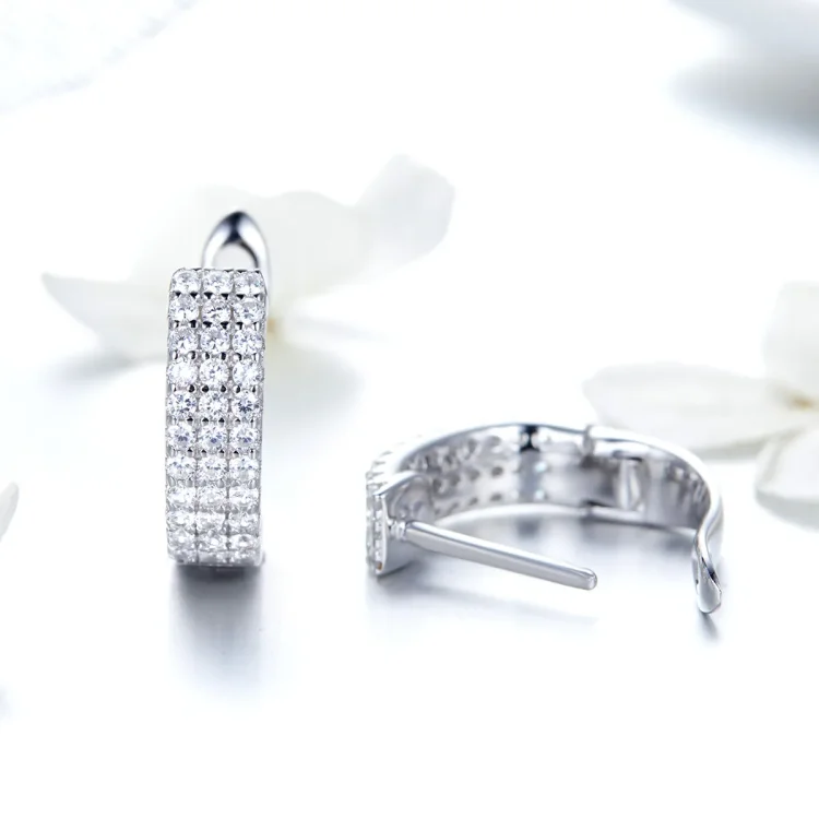 Srebrni sijoči uhani s časovnim obročem v stilu Pandora - SCE560