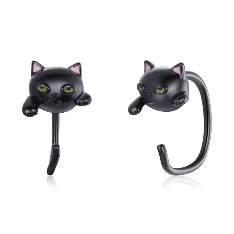 Srebrni uhani s črno mačko v slogu Pandora SCE1125