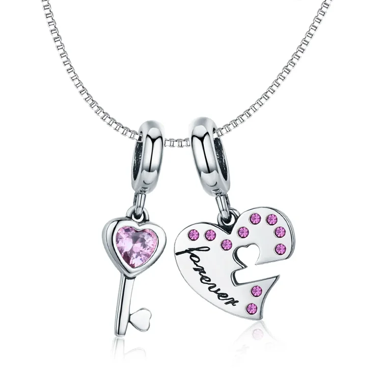 Pandora Style Silver Key of Heart Dangle - SCC638, osupljiv dodatek, ki bo odklenil svet elegance in šarma. Ta viseči obesek, izdelan s posebno pozornostjo do podrobnosti, je popoln dodatek k kateri koli zapestnici ali ogrlici v slogu Pandora. Ključne značilnosti tega dela so resnično očarljive. Izdelan je iz visokokakovostnega srebra in prikazuje čudovito oblikovan ključ, okrašen z nežnimi srčki. Zaradi zapletene izdelave in zapletenih detajlov je ta viseči obesek prava umetnina. Ta viseči obesek ne samo, da doda pridih prefinjenosti vaši zbirki nakita, ampak ima tudi globlji pomen. Ključ simbolizira odklepanje srca, zaradi česar je idealno darilo za nekoga posebnega ali pomemben samonakup. S svojo vsestransko zasnovo lahko ta viseči obesek enostavno dodate ali odstranite iz svojih najljubših kosov nakita v slogu Pandora. Z lahkoto dopolnjuje vsak stil ali priložnost, ne glede na to, ali gre za priložnostne izlete ali formalne dogodke. Varna in trpežna zaponka zagotavlja, da vaš šarm ostane na mestu, zagotavlja brezskrbnost in brezskrbno nošenje. Razvajajte se ali presenetite ljubljeno osebo s srebrnim visečim ključem v obliki srca Pandora - SCC638. Sprejmite eleganco in simboliko tega čudovitega kosa in dovolite, da odklene svet lepote in občutkov v vašem življenju.
