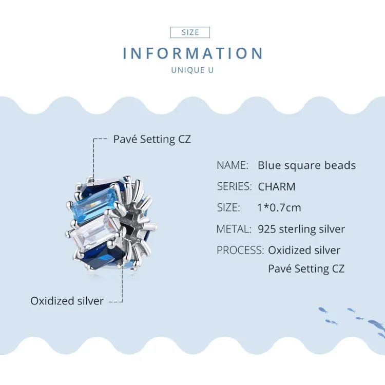 Srebrno moder kvadratni distančni obesek v slogu Pandora SCC1806