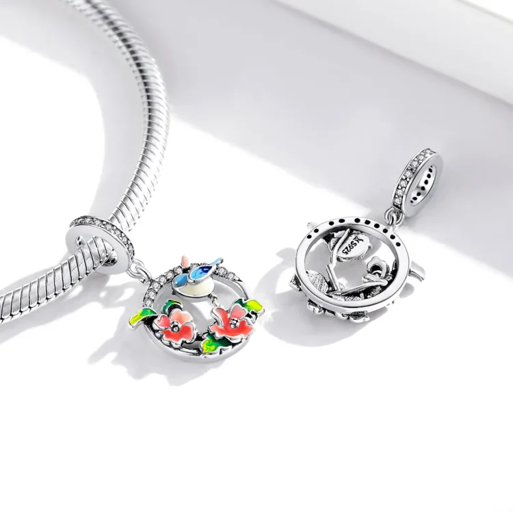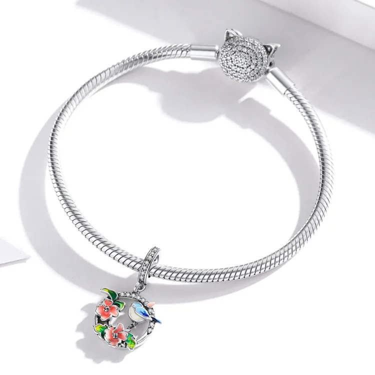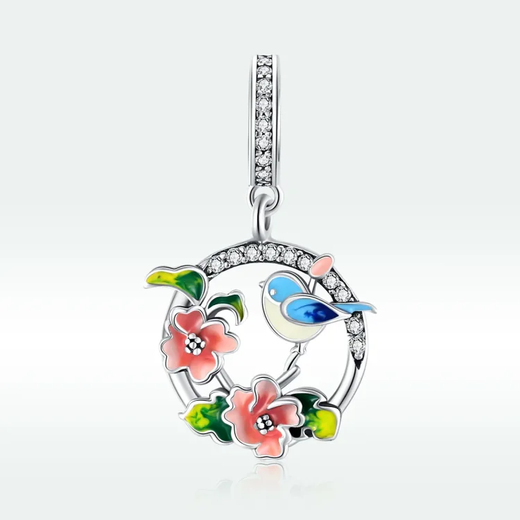 Viseče srebrne ptice in rože v slogu Pandora SCC1726