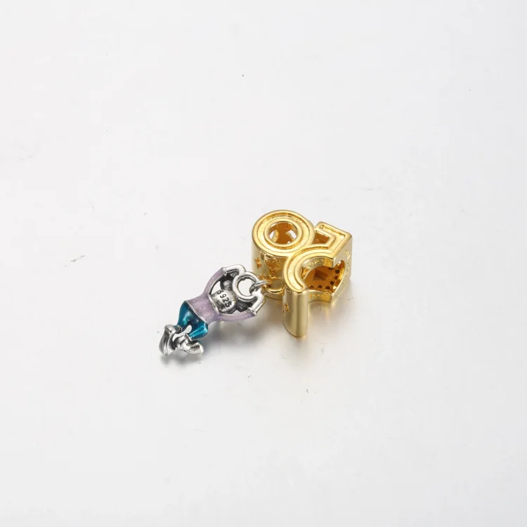 Odnesite domov delček najbolj čarobnega praznovanja na svetu z visečim obeskom Disney, Mickey Mouse Walt Disney World 50th Anniversary World. Ta obesek je ročno obdelan v srebru čistosti 900 in prevleki iz 14-karatnega zlata in prikazuje Mikija miško, ki igrivo visi na številki '50', medtem ko praznuje ta čarobni trenutek v Walt Disney World Resortu ®. Na voljo samo omejen čas in do odprodaje zalog.