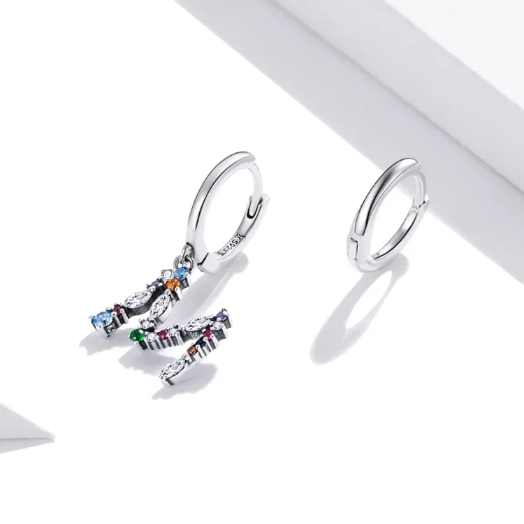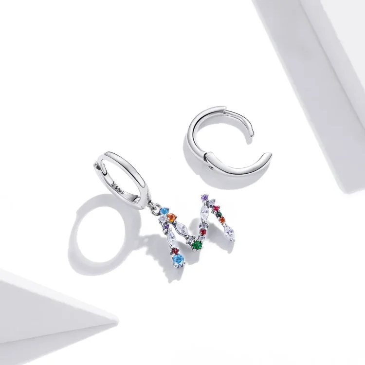 Viseči uhani s rebrno barvito črko M v stilu Pandora SCE1031
