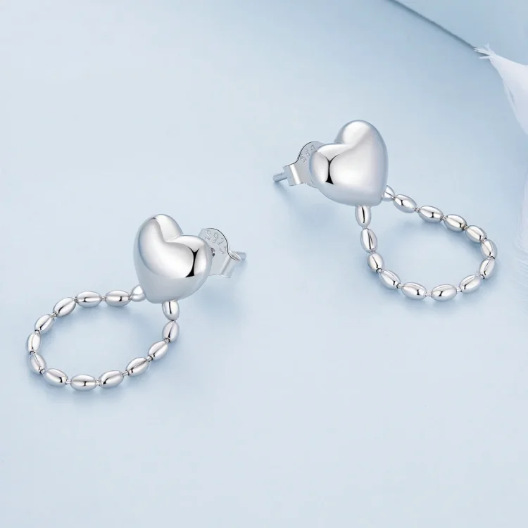 Naši izvrstni viseči uhani v obliki srca z resicami v slogu Pandora - BSE825! Ti uhani so zasnovani tako, da zajamejo bistvo elegance in vsestranskosti, zaradi česar so popoln dodatek za vsako žensko. Ti uhani, oblikovani z nežnimi verižicami iz riževih perlic, se ponašajo z očarljivo zasnovo resic, ki vašemu videzu doda pridih gibanja in šarma. Prefinjen obesek v obliki srca lepo dopolnjuje splošno preprostost dizajna in poudarja vašo edinstveno osebnost in slog. Ti uhani niso samo vizualno privlačni, ampak tudi neverjetno udobni za nošenje. Lahka konstrukcija zagotavlja, da jih lahko nosite več ur brez kakršnega koli nelagodja. Varno zapiranje na kavelj dodaja udobje, saj jih lahko preprosto nataknete in slečete. Ne glede na to, ali se udeležujete posebnega dogodka, se odpravljate na priložnostni izlet ali se celo preoblačite za zmenek, bodo ti uhani z resicami v obliki srca zlahka popestrili vsako obleko. So vsestranski dodatek, ki ga lahko kombinirate tako s formalnimi kot s prostimi oblačili, zaradi česar so obvezen dodatek k vaši zbirki nakita. Prepustite se privlačnosti naših Visečih uhanov z resicami v obliki srca Pandora - BSE825 in pokažite svojo večplastno osebnost z gracioznostjo in eleganco. Ne zamudite tega izvrstnega kosa, ki popolno povzema brezčasno lepoto in sodoben slog.