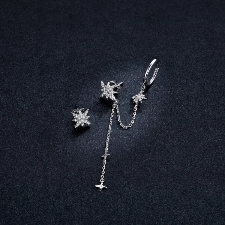 Naši viseči uhani s srebrnimi sijočimi zvezdami v slogu Pandora - BSE433, osupljiv dodatek, ki bo vašemu kompletu dodal pridih nebesne elegance. Ti uhani, izdelani s skrbno pozornostjo do podrobnosti, so oblikovani tako, da ujamejo lepoto nočnega neba. Viseči v obliki zvezde so izdelani iz visokokakovostnega srebra, kar zagotavlja vzdržljivost in brezčasno privlačnost. Vsaka zvezda je nežno okrašena z bleščečimi kristali, ki odbijajo svetlobo z vsakim vašim gibom. Svetleče zvezde so obešene na srebrni kavelj, kar jim omogoča, da se elegantno zibljejo med vašimi dnevi. Ne samo, da so ti uhani vizualno privlačni, ampak ponujajo tudi vrsto prednosti. Zaradi hipoalergenega srebrnega materiala so primerne tudi za najbolj občutljiva ušesa, kar zagotavlja udobno nošenje brez draženja. Lahek dizajn zagotavlja, da lahko uživate v teh uhanih ves dan brez kakršnega koli nelagodja. Ti Viseči uhani s srebrnimi sijočimi zvezdami v slogu Pandora - BSE433 so dovolj vsestranski, da jih lahko kombinirate s katero koli obleko, naj bo ležerna ali formalna. Z lahkoto povzdignejo vaš stil in vsakemu videzu dodajo pridih prefinjenosti in glamurja. Ne glede na to, ali se udeležujete posebnega dogodka ali preprosto želite popestriti svojo vsakodnevno obleko, so ti uhani popoln dodatek za izraz. S svojim očarljivim dizajnom in izjemno kakovostjo so ti uhani tudi premišljeno darilo za vaše najdražje. Presenetite nekoga posebnega s temi visečimi uhani s srebrnimi svetlečimi zvezdami v slogu Pandora - BSE433 in opazujte, kako njihov obraz zasije od veselja. Objemite lepoto nočnega neba z našimi Visečimi uhani s srebrnimi sijočimi zvezdami v stilu Pandora - BSE433. Naročite zdaj in dovolite, da ta nebesna čudesa postanejo cenjen dodatek k vaši zbirki nakita.